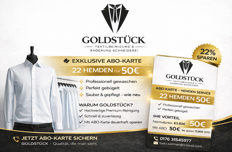 Als Team, das nun seit 23 Jahren mit großer Sorgfalt und Engagement für Sie in der Textilreinigung tätig ist, möchten wir uns herzlich für Ihr Vertrauen und Ihre langjährige Treue bedanken. In dieser Zeit ist uns eine gute Zusammenarbeit und Ihre Zufriedenheit immer besonders wichtig gewesen.